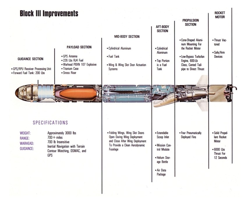 תמונה 1 – מבנה טיל שיוט אמריקאי TOMAHAWK Block III | מקור: ausairpower.net