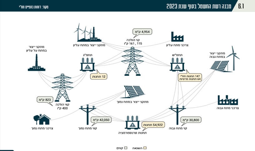 - השנאה ממתח עליון למתח גבוה – באמצעות 212 תחנות משנה (תחמ"ש).