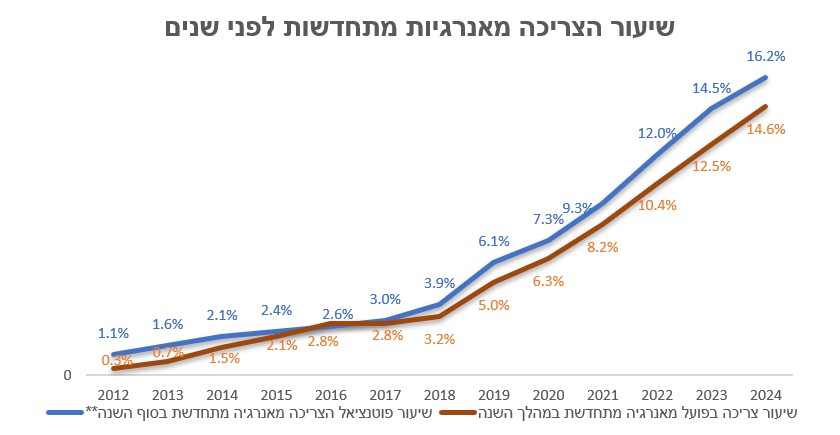 תרשים 1 – שיעור הצריכה מאנרגיות מתחדשות לפי שנים
