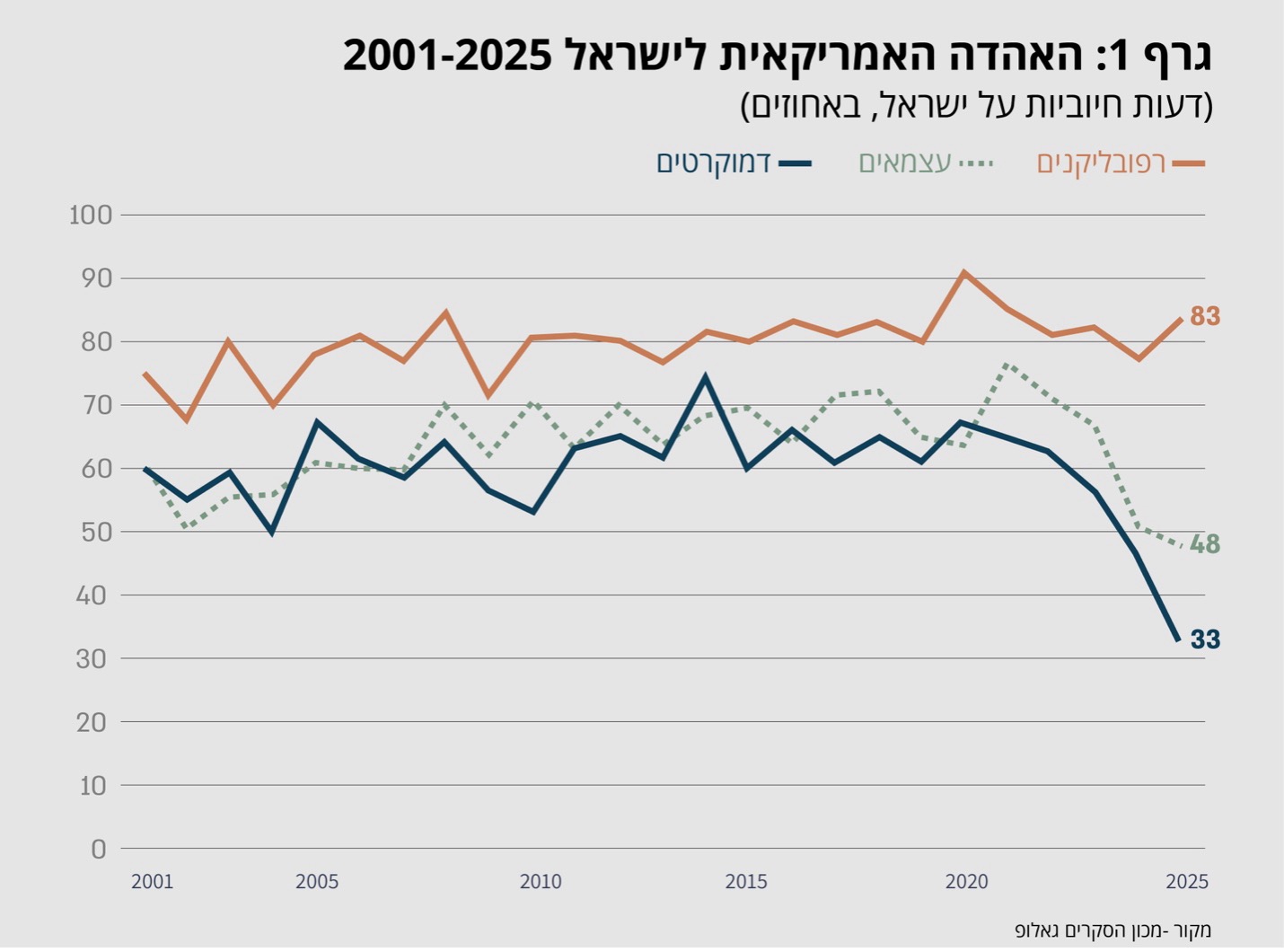 ההידרדרות באהדה לישראל, והביקורת הגוברת עליה החמירו בשנים האחרונות, וביתר שאת מאז תחילת מלחמת "חרבות ברזל" - מה שהותיר הרבה פחות מרחבי הסכמה בין הדמוקרטים לרפובליקנים בסוגייה זו. כיום, הקיטוב בולט יותר: 83% מהרפובליקנים חשים אהדה לישראל לעומת 33% בלבד מהדמוקרטים. כלומר, לאורך השנים, אהדתם של הרפובליקנים לישראל גברה, בעוד שאהדתם של הדמוקרטים לישראל פחתה. נתונים אלה מצביעים על היעשות התמיכה בישראל נושא חשוב באגף השמרני של הפוליטיקה האמריקאית, בעוד התנגדות לה הפכה במידת מה לנדבך חשוב מרכזי במחנה הפוליטי הפרוגרסיבי.