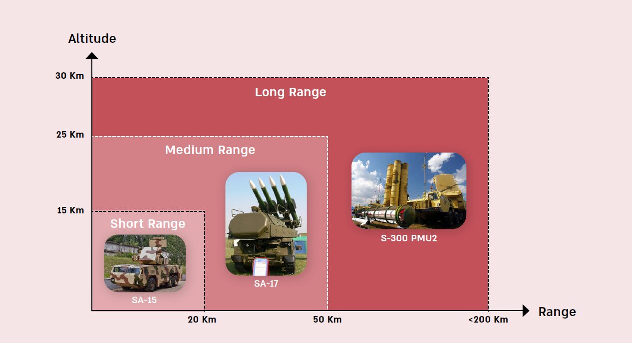 סיווג מערכות הגנה אווירית לפי הטווח (ראו דוגמאות בתמונה 2):
