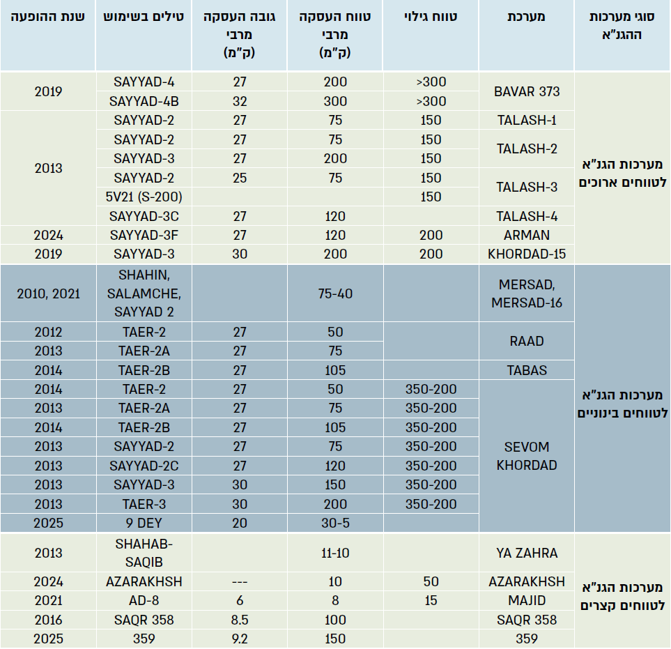 לוח 1 – השוואת מערכות הגנ"א איראניות