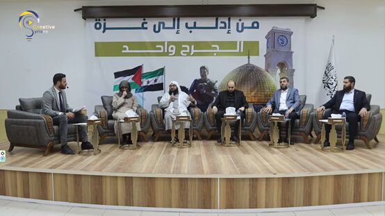 דובר נוסף בכנס היה עטון, יועצו הדתי של א-שרע ואז הסמכות ההלכתית העליונה ב-HTS. בפתח דבריו הכריז כי אדמת פלסטין הקדושה היא חלק מ"סוריה הגדולה" (אל-שאם), שמהווה נתח חשוב בח'ליפות האסלאמית. לטענתו, אין הבדל בין סורי לפלסטיני, כפי שבא לידי ביטוי בהשתתפות האחים המוסלמים הסורים במלחמת 1948. בדומה, הג'האד הנוכחי בפלסטין הוא חובה אישית החלה על כל המוסלמים (פרץ' עין), בהתאם ליכולותיהם.