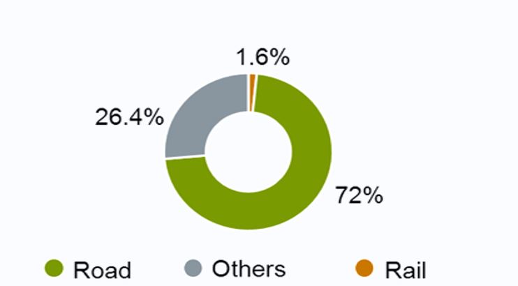 72 אחוזים מסך הזיהום נוצר כתוצאה בתנועה כלי רכב בכבישים, 1.6 אחוזים מפעילות של תחבורה מסילתית, והשאר מזהמים אחרים. כלומר רוב מוחלט נגרם מתחבורה.