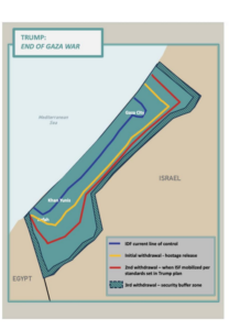 - מדינות ערב, מצדן, נעתרו (מכוח תמיכתן ביוזמת טראמפ) לדרישת ישראל לשמור בידיה את חופש הפעולה להמשך דיכוי חמאס, ולהתנות את עומק הנסיגה של צה"ל בעומק הפירוז של השטח;