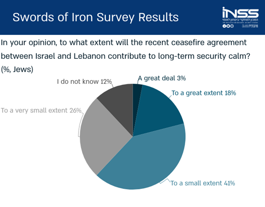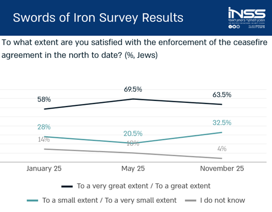The war against Hezbollah ended with a prevailing public perception that even if Hezbollah was not decisively defeated in a way that fully disarmed it, the war nevertheless ended with a clear Israeli victory. The killing of Hezbollah leader Hassan Nasrallah also provided a distinct image of victory. Yet an analysis of Israeli public opinion during and after the Swords of Iron war—including the campaign against Hezbollah—suggests that the post–October 7 period is characterized by a widespread belief that a major security event could occur at any time and in any arena, alongside a constant state of alert regarding the possibility of escalation. Operational successes on the northern front, and the fact that fighting there concluded with a signed agreement, were not sufficient on their own to overcome this deeply embedded skepticism.