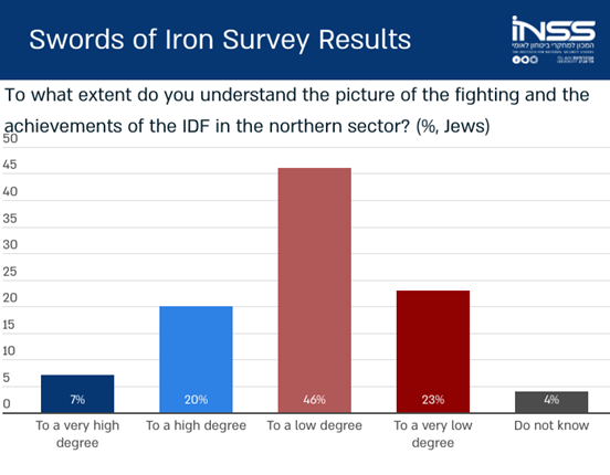 The second dimension of public perceptions of the defensive campaign concerned Israel’s responses to Hezbollah’s attacks. The IDF spokesperson consistently reported achievements, highlighting primarily a long list of targeted killings of senior Hezbollah commanders—the most senior being Wissam Tawil, the commander of the Radwan Force, on January 8, 2024. However, these achievements did not register in public consciousness. In a survey conducted in May 2024, a majority of Jewish respondents (69%) said that the overall picture of the fighting and the IDF’s achievements in the northern arena was only slightly clear or not clear at all to them (see Figure 5).